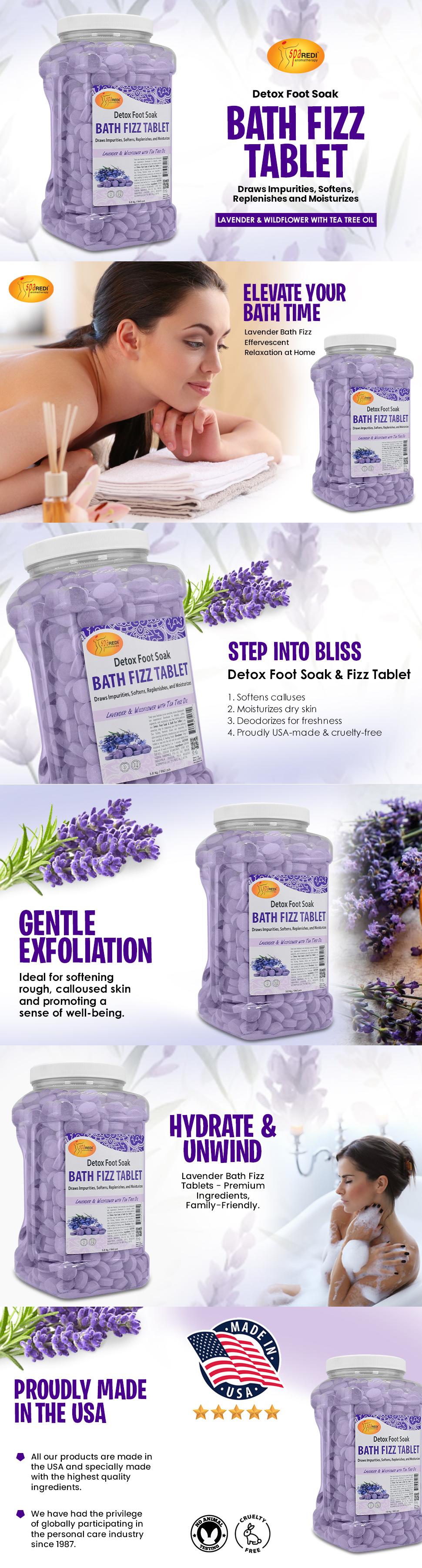 Elevate your bathing experience with SPA REDI Bath Fizz Tablets. Perfect for unwinding after a long day or treating yourself to a pampering session, these fizz tablets will leave you feeling refreshed and revitalized. Try them today and turn your bath into a fragrant escape!