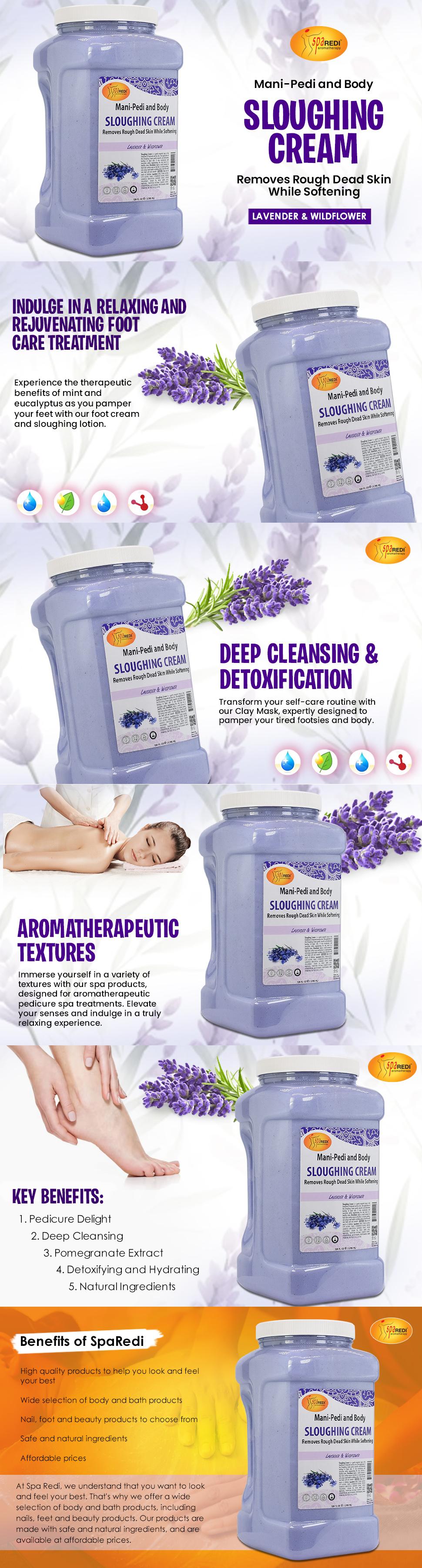 Try SPA REDI Foot Cream and Sloughing Lotion today and experience gentle exfoliation and deep hydration, perfect for revitalizing dry, cracked feet. Suitable for both personal and professional use.