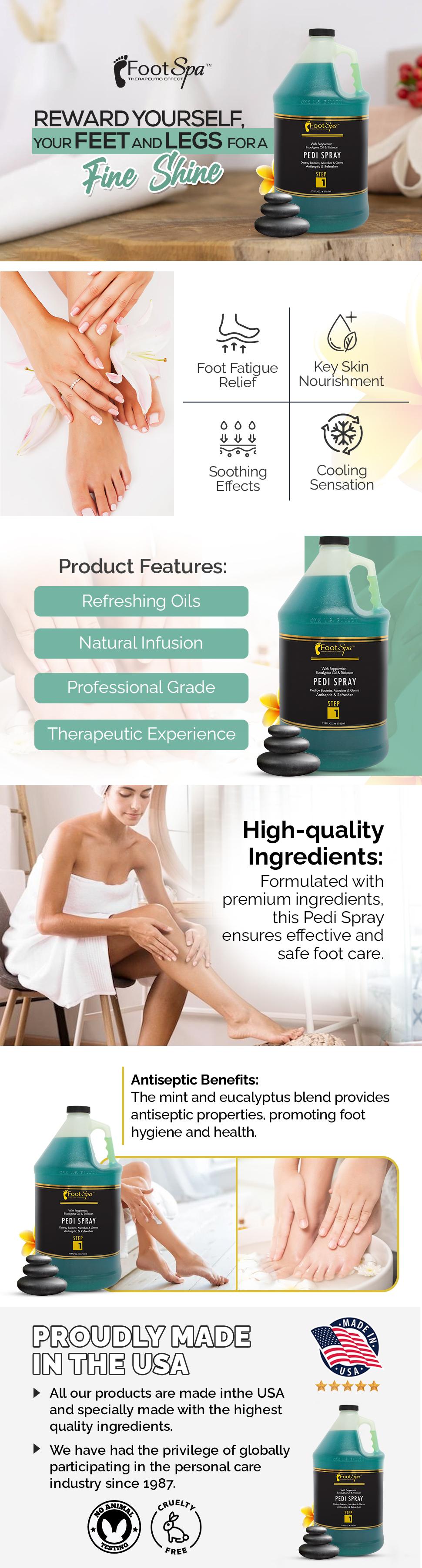 Try FOOTSPA Pedi Spray Antiseptic today for a refreshing foot care experience that soothes and protects. Perfect for professionals and foot care enthusiasts alike!