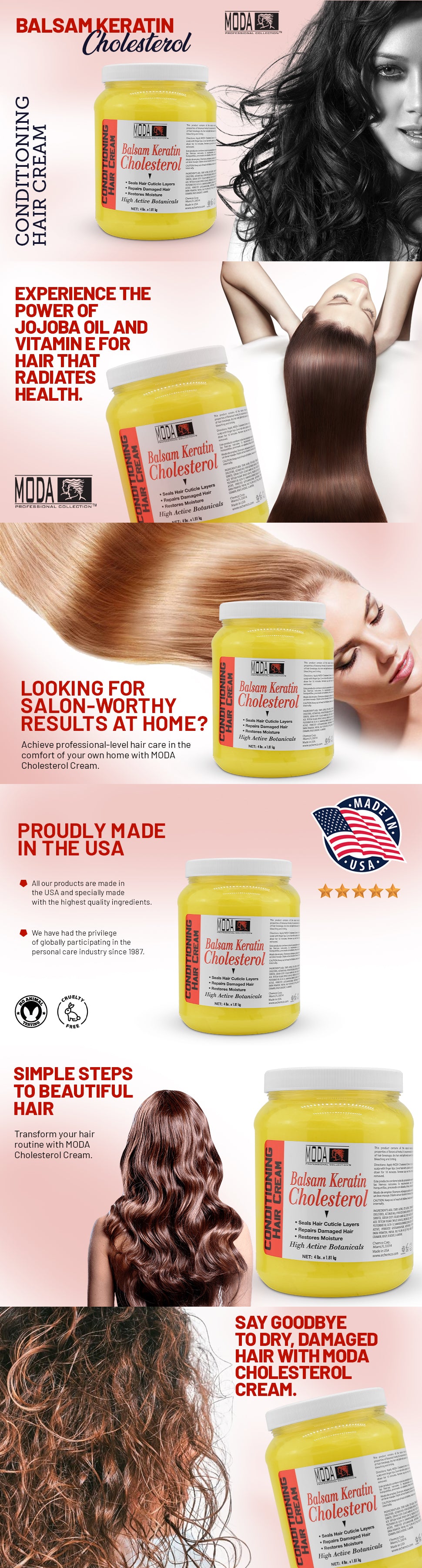 MODA - Cholesterol Deep Conditioning Hair Cream, 64 Oz – Enriched with Keratin, Panthenol, Collagen Amino Acids, Jojoba Oil & Vitamin E – Intense Moisture Repair for Dry, Damaged Hair – Professional Treatment