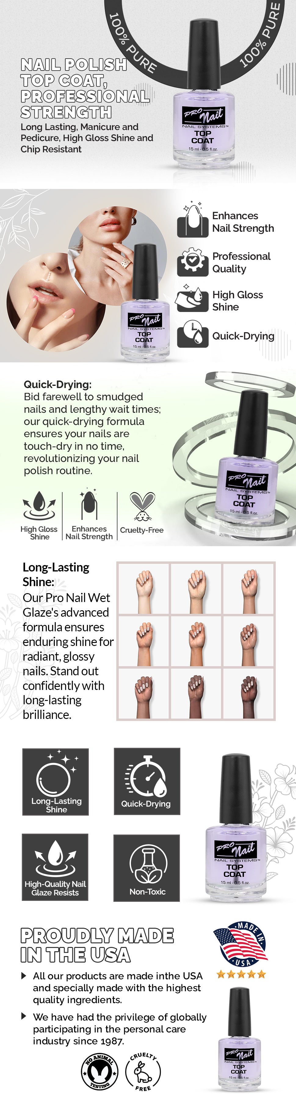 PRO NAIL - Nail Polish Top Coat - High Gloss, Chip Resistant, Long-Lasting Shine for Manicure & Pedicure