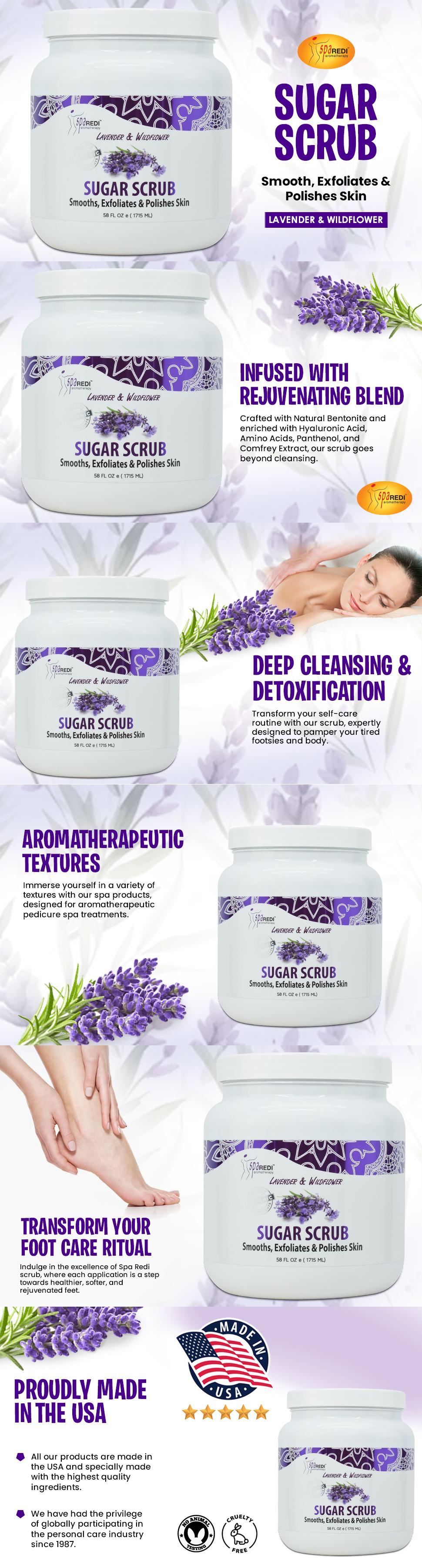 Experience the refreshing and revitalizing effects of SPA REDI Sugar Body Scrub. Treat yourself to smoother, softer skin and enjoy the delightful aromas as you indulge in your self-care routine!