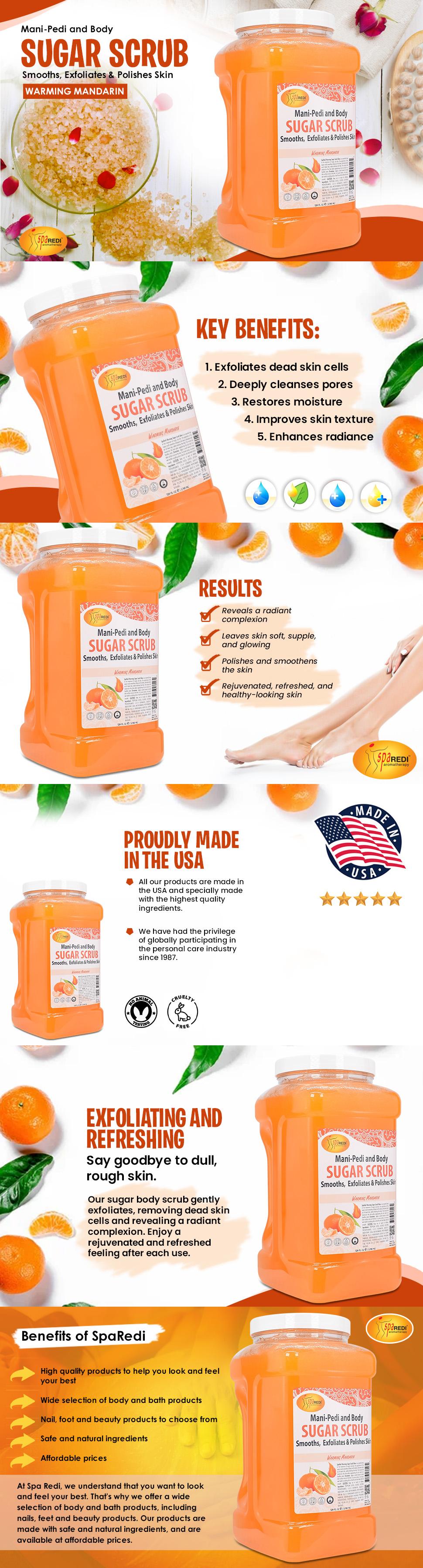 SPA REDI Sugar Body Scrub - Mandarin Scented, Exfoliating & Hydrating for Smooth, Glowing Skin